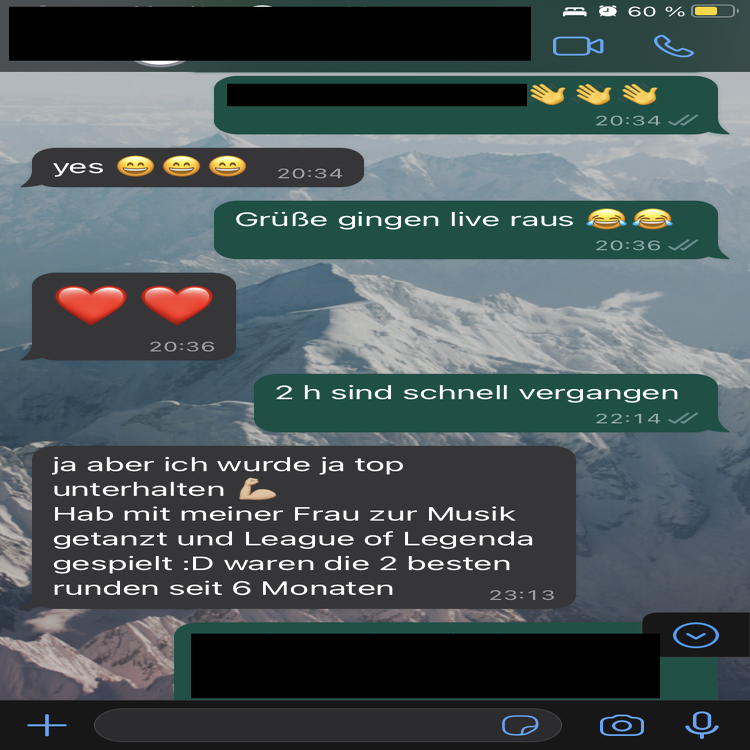 [...] Hab mit meiner Frau zur Musik getanzt und League of Legenda gespielt :D waren die 2 besten runden seit 6 Monaten [...]